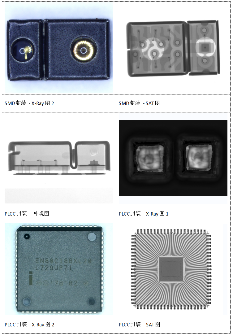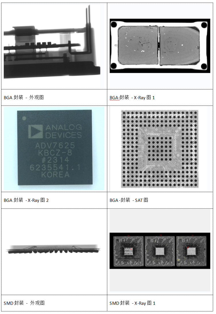 From the imaging image, X-Ray can clearly depict the internal structure of IC packaging, such as broken bonding wires, wafer cracks, and other issues. For the determination of authenticity of materials, X-Ray can also observe the differences in the internal structure for judgment. SAT is based on ultrasound, and imaging involves editing echoes from different parts and materials into grayscale images. SAT is sensitive to internal layering and specializes in detecting internal structural fractures, accurately locating problem points, and determining the size and shape of defects.