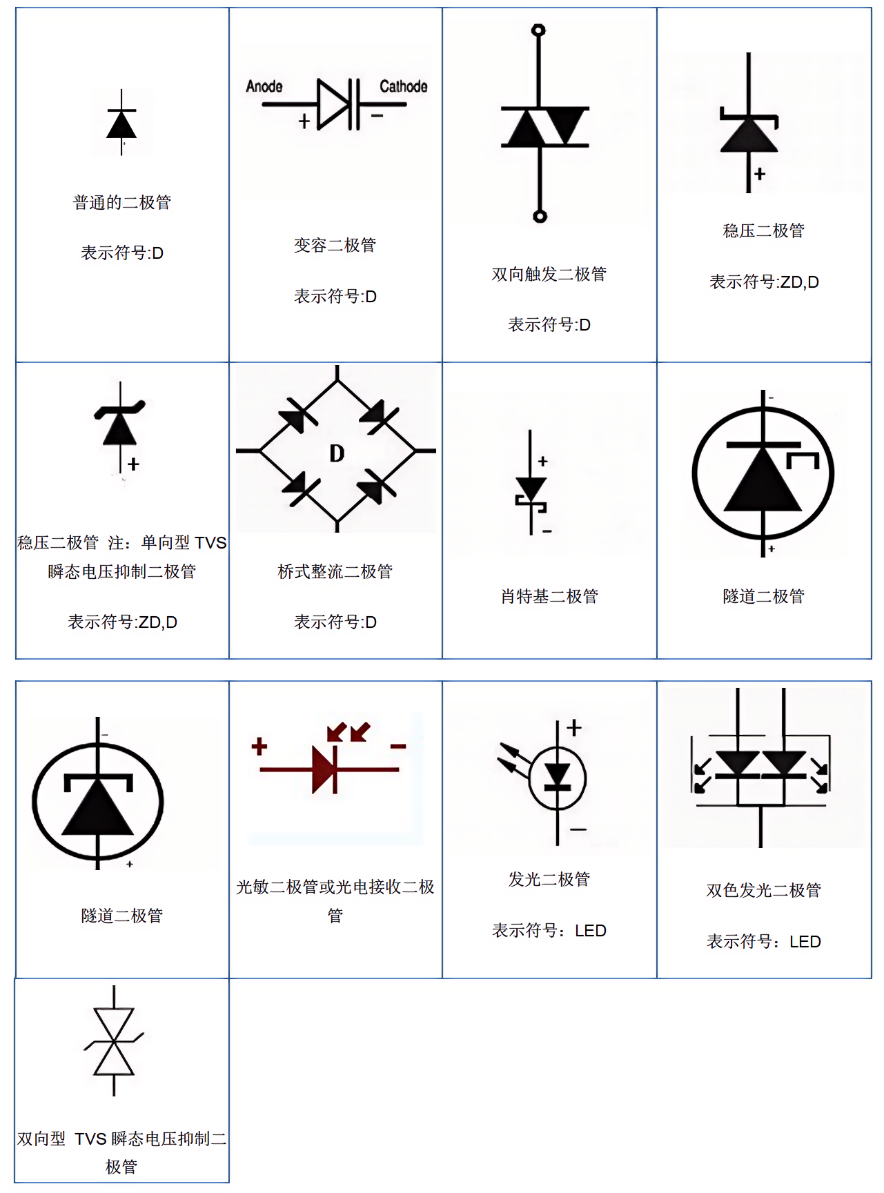 作为最基础的分立器件,二极管在几乎所有电子电路中都有用处,二极管的单向导电性,能在开关电路、保护电路、稳压电路等各种场景中发挥作用。随着需求的不断更新和发展,二极管自身也发展出各式各样的形态,以下为十余种常见、常用二极管的电路图表示法: