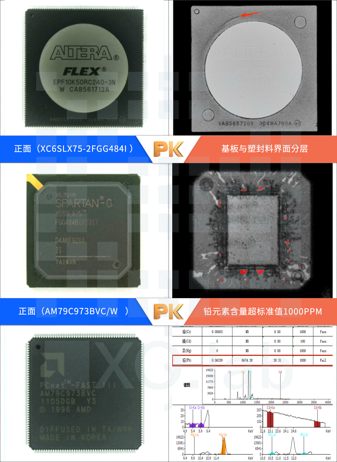 The commonly used non-destructive testing methods include appearance inspection, X-ray inspection, thermal conductivity testing, acoustic testing, XRF testing, etc.