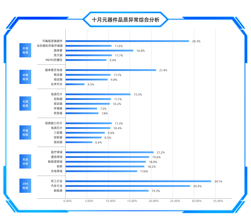 通过专业失效分析设备,借助各种测试分析技术和分析程序确认电子元器件的失效现象,分辨其失效模式和失效机理,确认最终的失效原因,并提出改进设计和制造工艺的建议,防止失效的重复出现。
