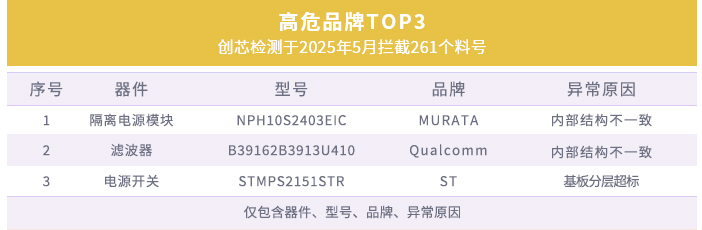 为了使更多客户了解异常物料信息,创芯检测对外发布元器件异常品质分析报告,希望能帮助您预警风险,确保安心购物,避免购买不合格器件。