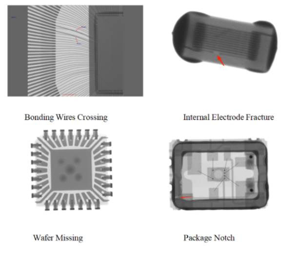 X-ray inspection primarily inspects the internal wafers, bonding wires, substrates, adhesives, and encapsulating materials of the chip. It can also detect various abnormal phenomena such as wafer cracks, voids in adhesives, die attach fillet, wire bonding radian, foreign objects in encapsulating materials, tilting and soldering of internal components in modules, ESD damage, etc. Customers can provide original samples or good chips for inspecting the consistency of the internal chip.